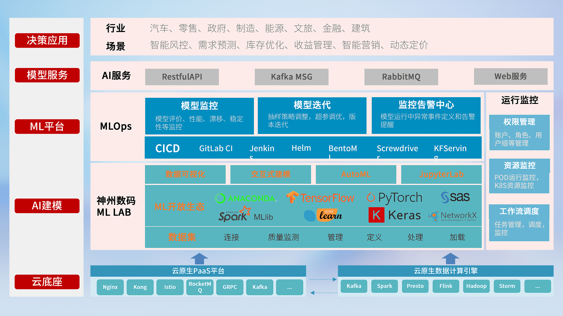 数据+模型双引擎驱动,,,面向智能服务场景,,,快速灵活利用AI技术,,支持业务决策,,,助力企业智能化转型破局。。